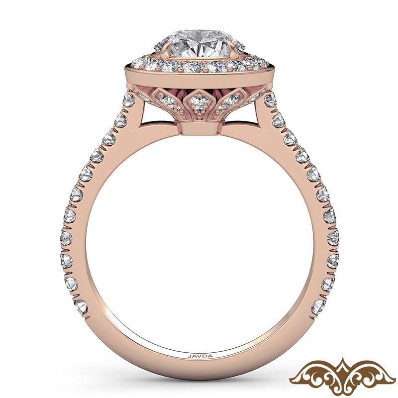 Petal Basket Round Semi Mount 14k Rose Gold Halo Diamond Engagement Ring 0.7Ct.