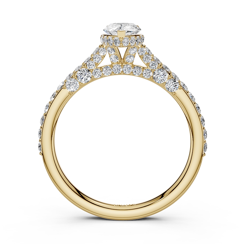 style Engagement Ring, center is Pear shape Diamond Report by IGI, E Color & VS1 clarity, Made in 14k Yellow Gold (4.61 ct. tw.)