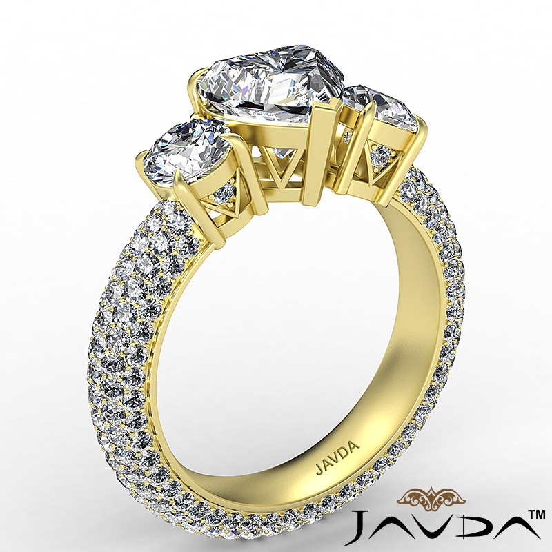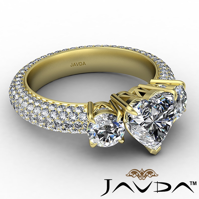 Claw Prong 3 Stone Pave Shank style Engagement Ring, center is Heart shape Diamond Report by GIA, J Color & SI2 clarity, Made in 14k Yellow Gold (3.48 ct. tw.)
