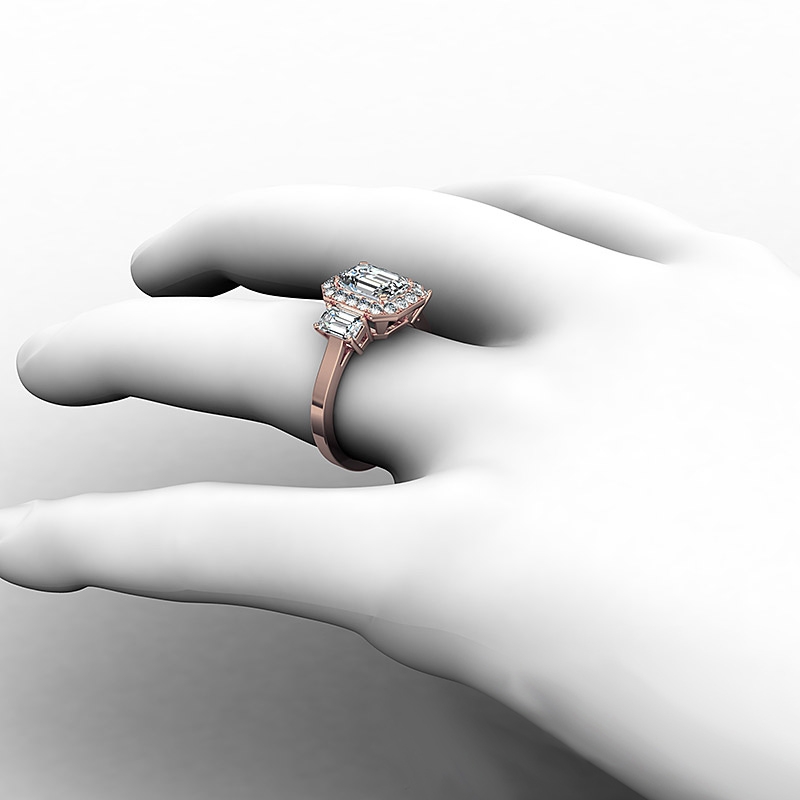style Engagement Ring, center is Emerald shape Diamond Report by IGI, D Color & VS1 clarity, Made in 14k Rose Gold (1.78 ct. tw.)