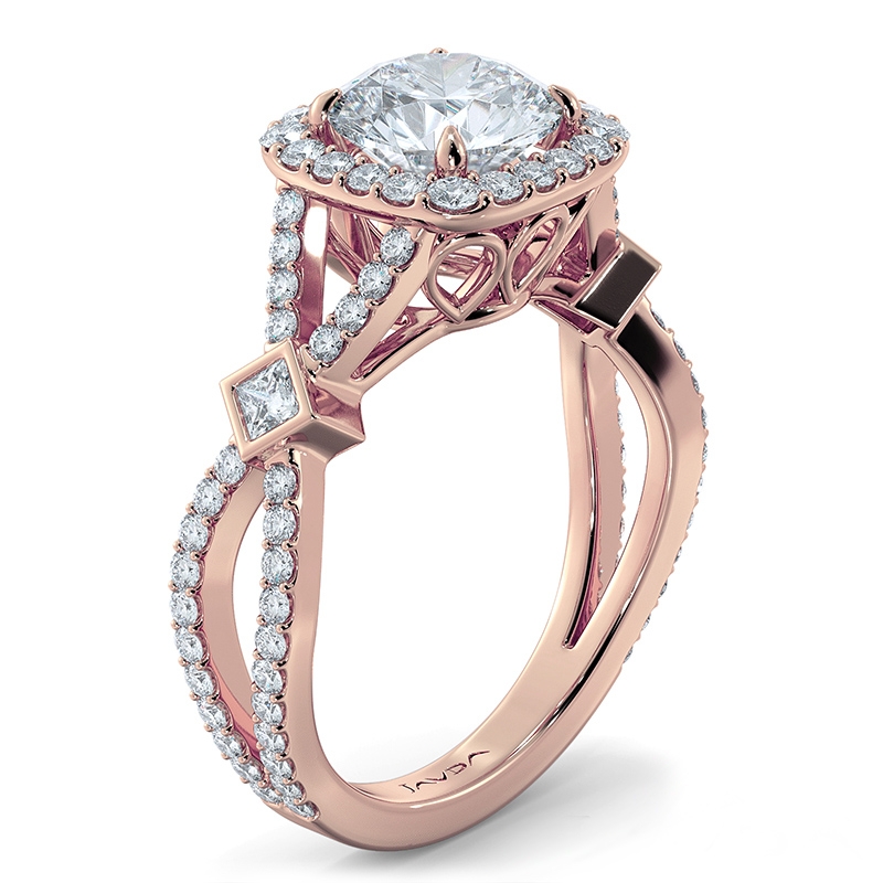 style Engagement Ring, center is Round shape Diamond Report by IGI, D Color & VS1 clarity, Made in 14k Rose Gold (1.94 ct. tw.)