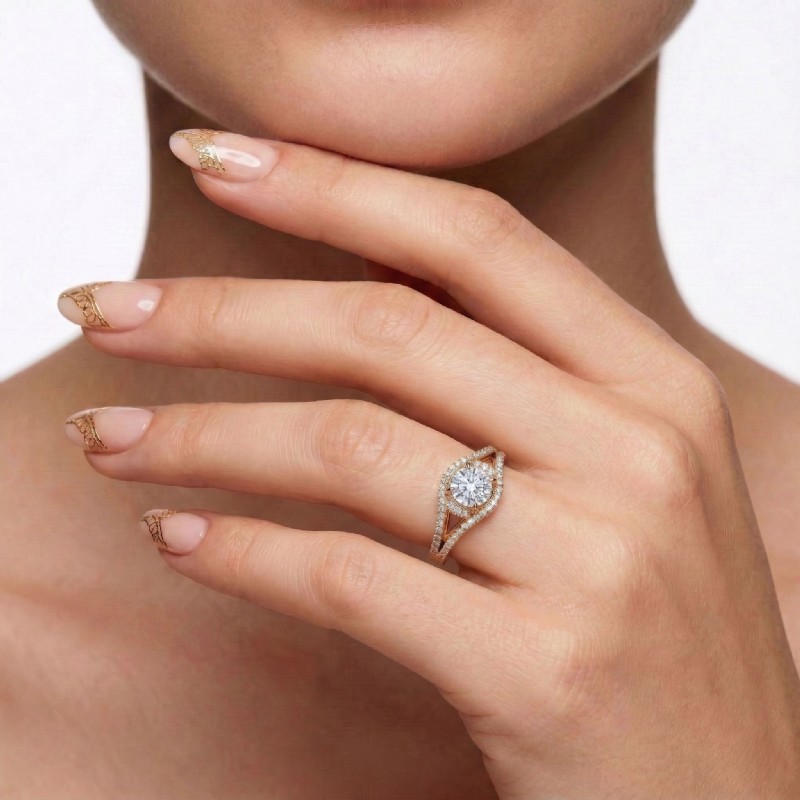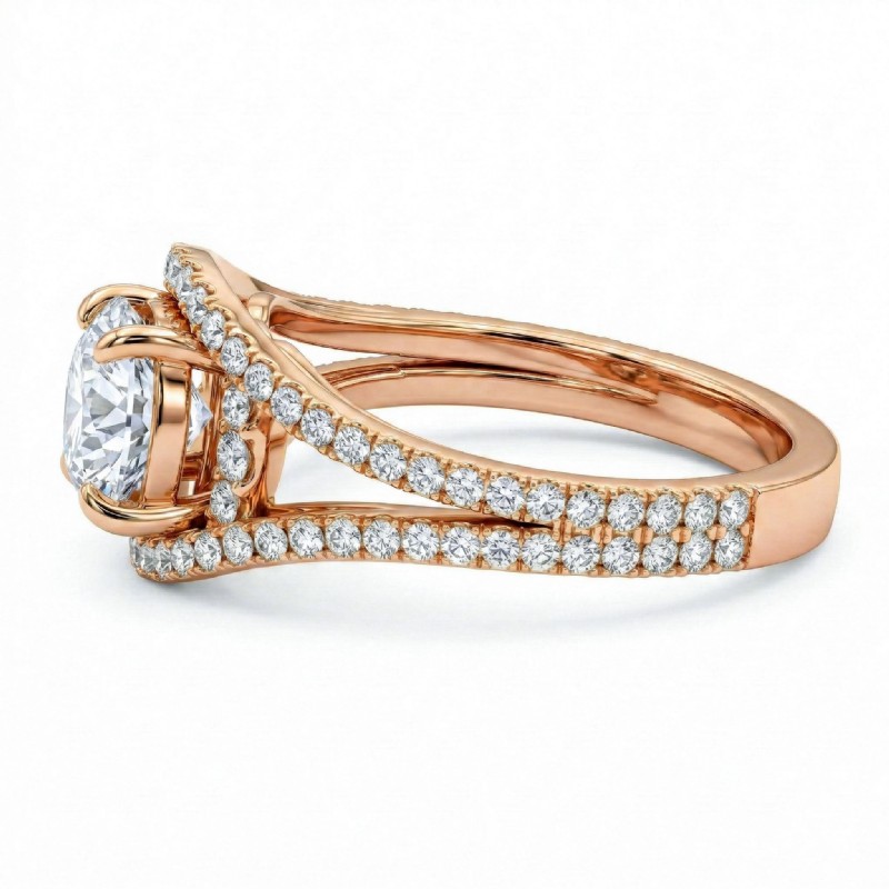 style Engagement Ring, center is Round shape Diamond Report by IGI, D Color & VS1 clarity, Made in 18k Rose Gold (1.69 ct. tw.)