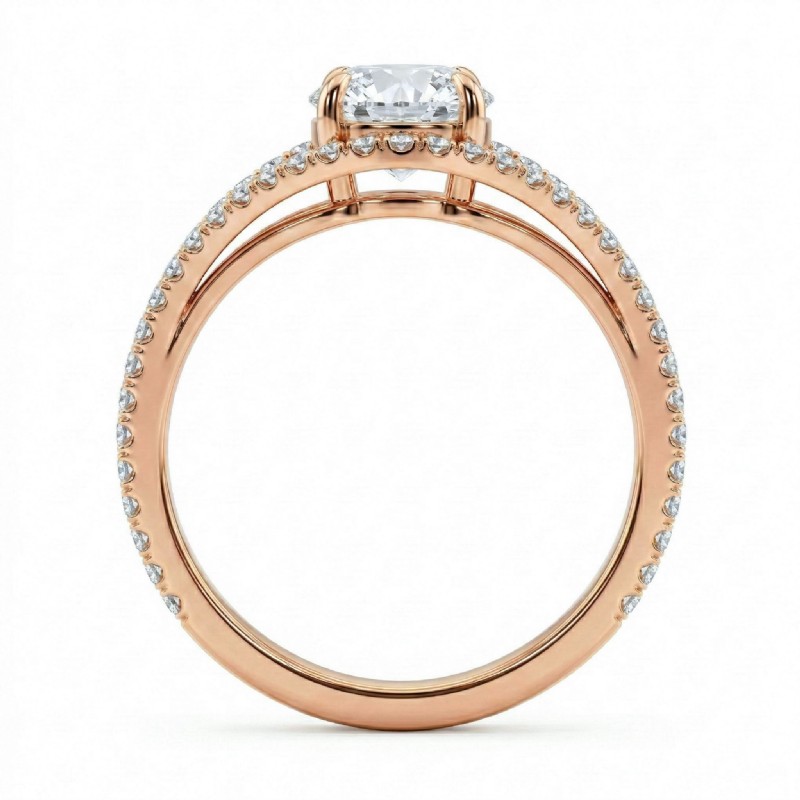 U Shared Prong Diamond Engagement Ring Round Semi Mount 18k Rose Gold 0.65Ct.