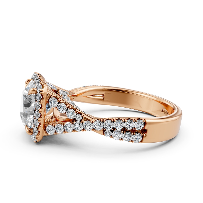 Halo U Cut Prong Diamond Engagement Ring Round Semi Mount 14k Rose Gold 1.1Ct.