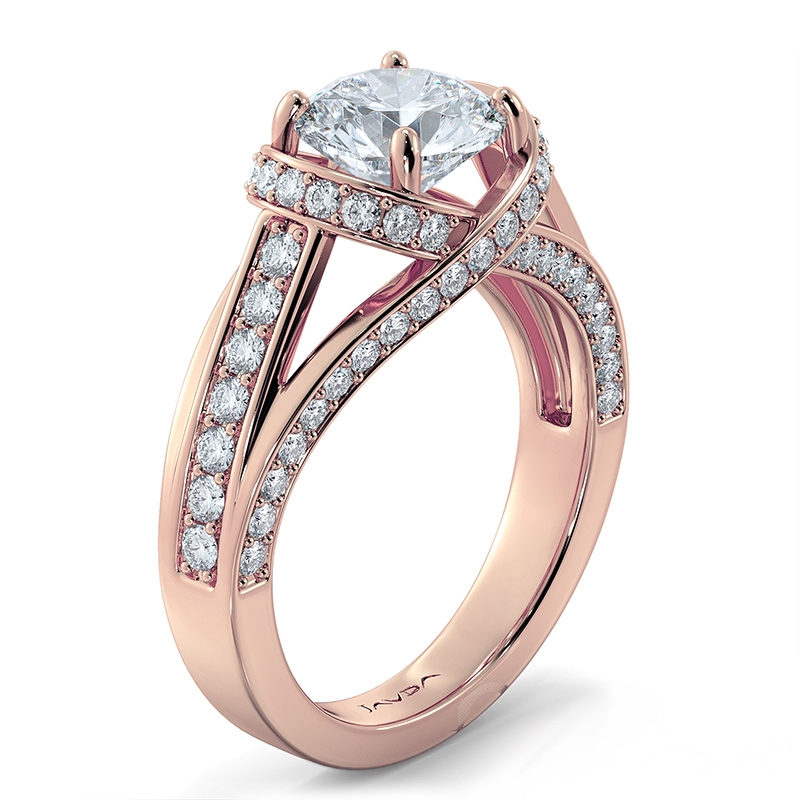 Diamond Engagement Ring 14k Rose Gold Round Semi Mount Pave Set Band 0.9Ct.