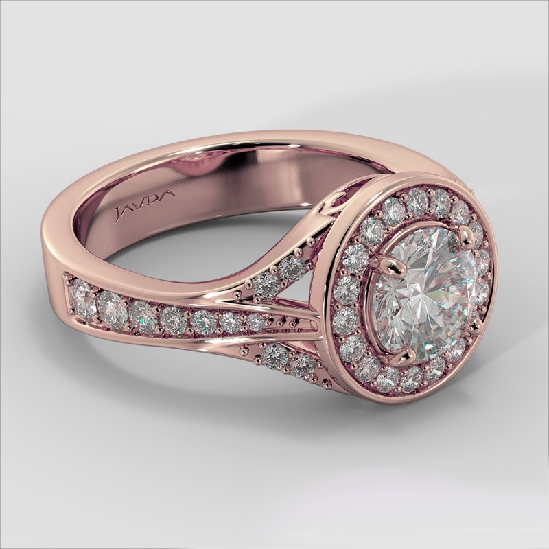 Diamond Engagement Halo Pave Set Ring Round Semi Mount 18k Rose Gold 0.45Ct.