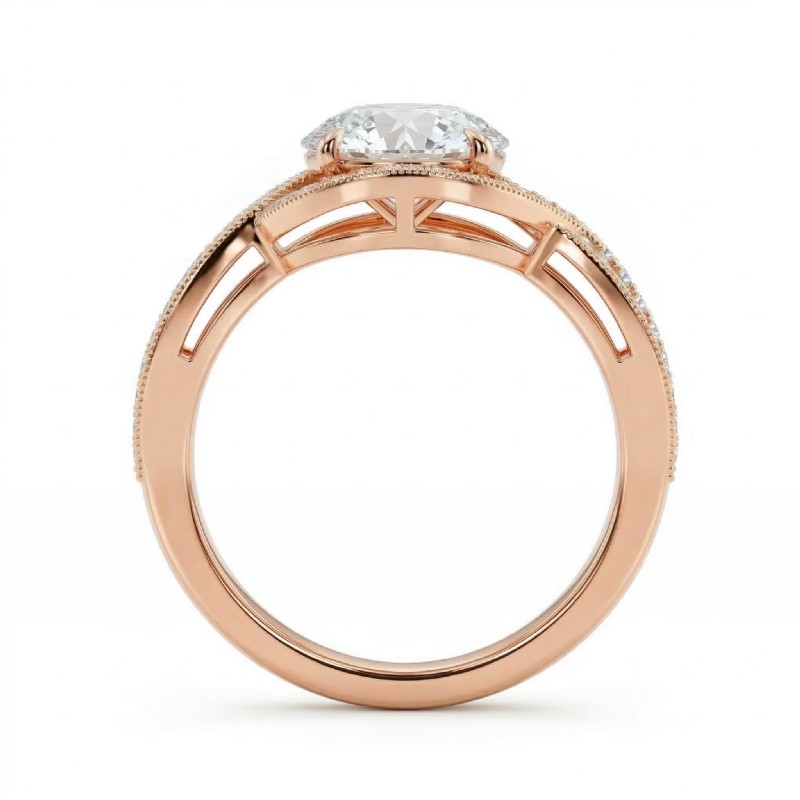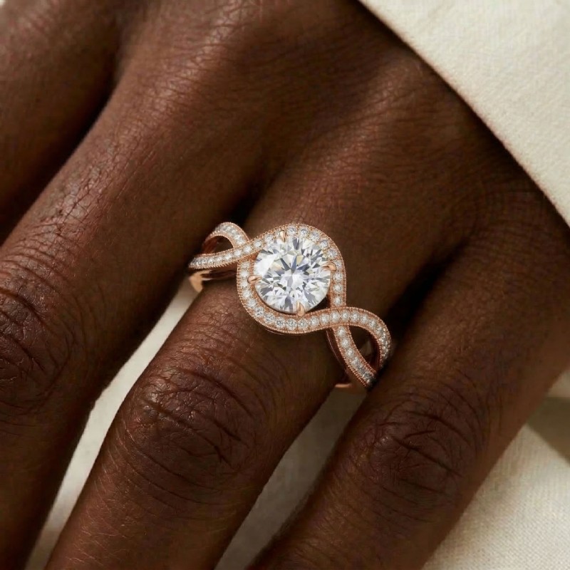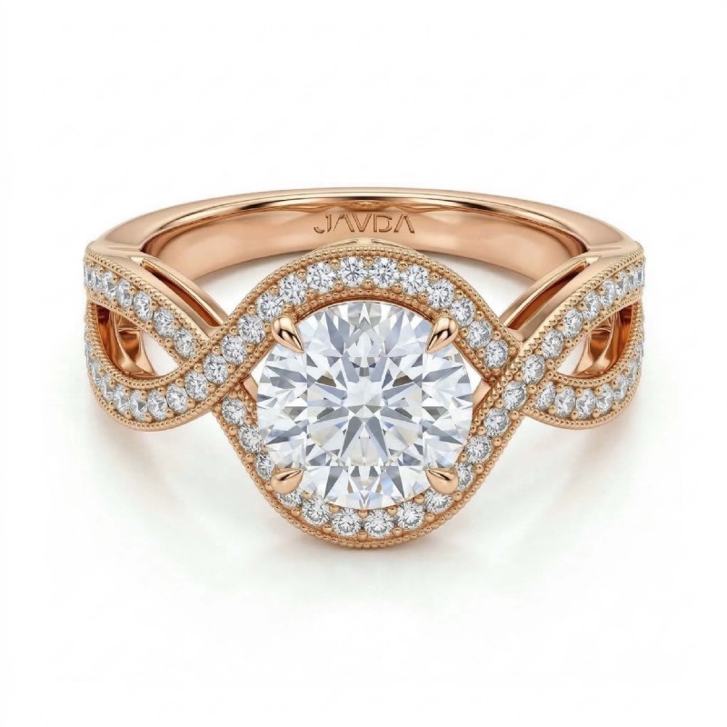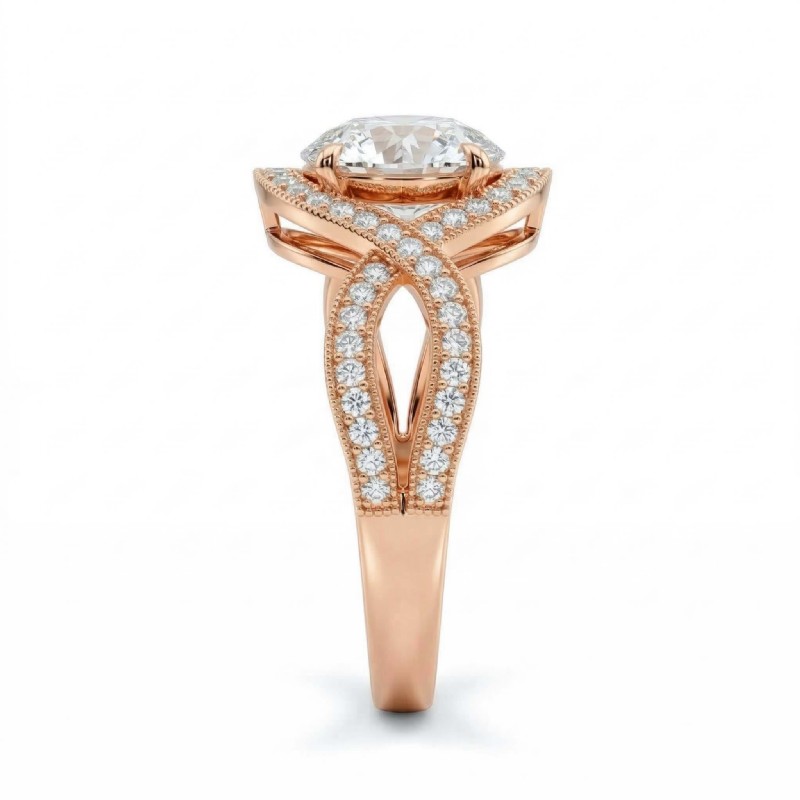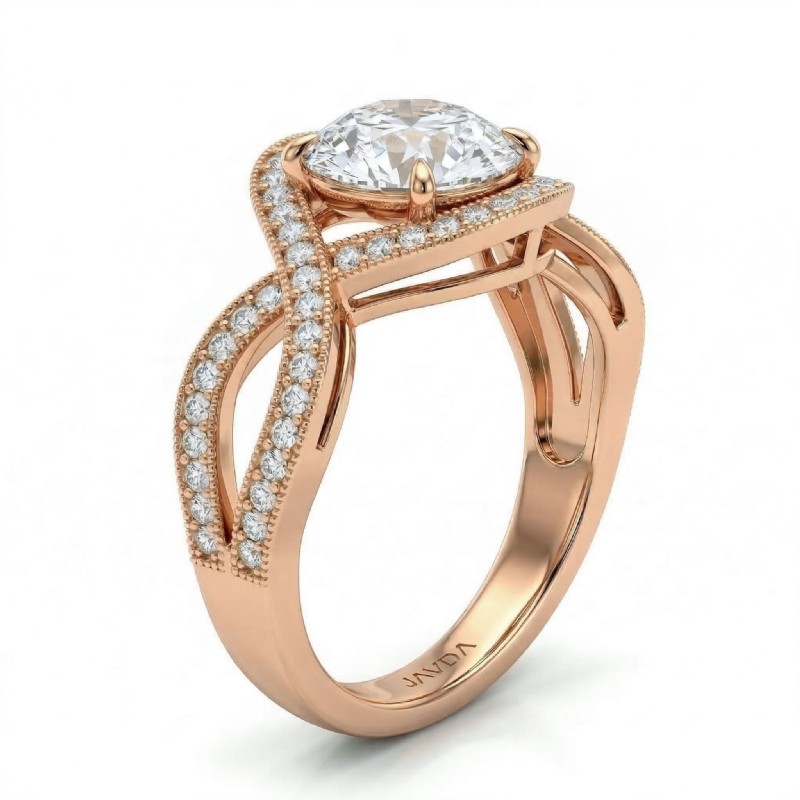 style Engagement Ring, center is Round shape Diamond Report by IGI, D Color & VS1 clarity, Made in 18k Rose Gold (1.49 ct. tw.)