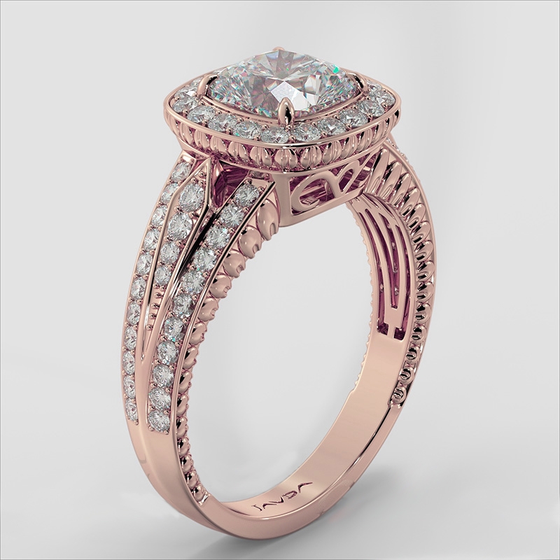 style Engagement Ring, center is Cushion shape Diamond Report by IGI, E Color & VS1 clarity, Made in 14k Rose Gold (2.17 ct. tw.)