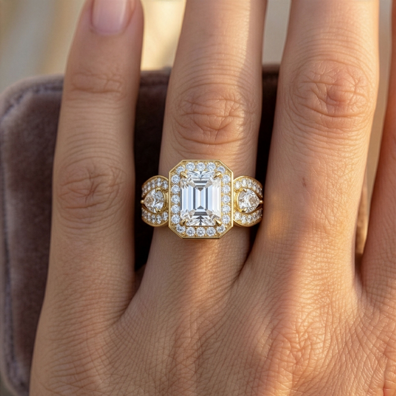 style Engagement Ring, center is Emerald shape Diamond Report by IGI, D Color & VS1 clarity, Made in 18k Yellow Gold (2.85 ct. tw.)