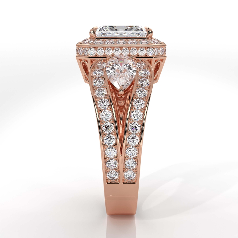 style Engagement Ring, center is Emerald shape Diamond Report by GIA, I Color & VVS2 clarity, Made in 18k Rose Gold (2.68 ct. tw.)