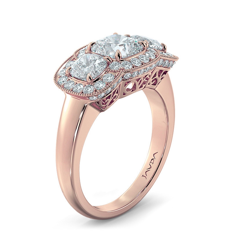 style Engagement Ring, center is Cushion shape Diamond Report by IGI, D Color & VS1 clarity, Made in 18k Rose Gold (2.06 ct. tw.)