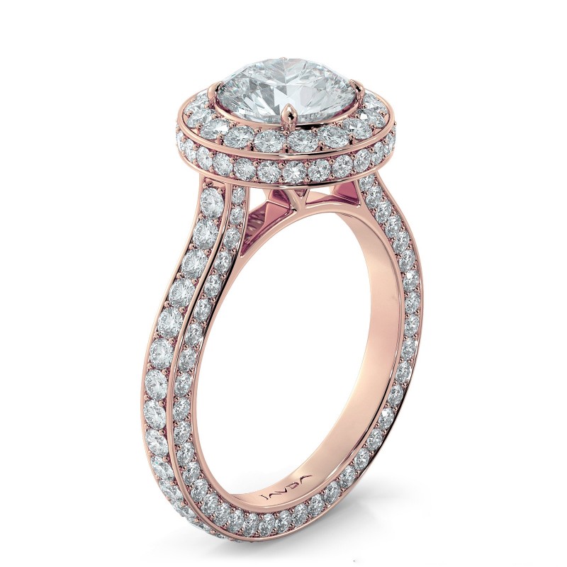 style Engagement Ring, center is Round shape Diamond Report by IGI, D Color & VS1 clarity, Made in 14k Rose Gold (2.94 ct. tw.)