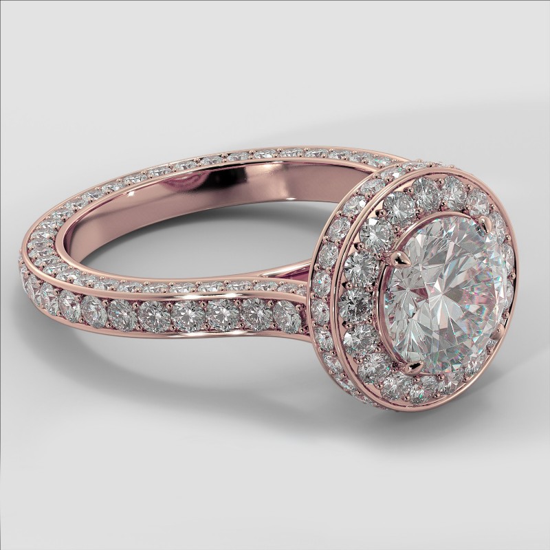 Round Diamond Engagement Ring Pave Semi Mount 14k Rose Gold Wedding Band 1.9Ct.