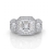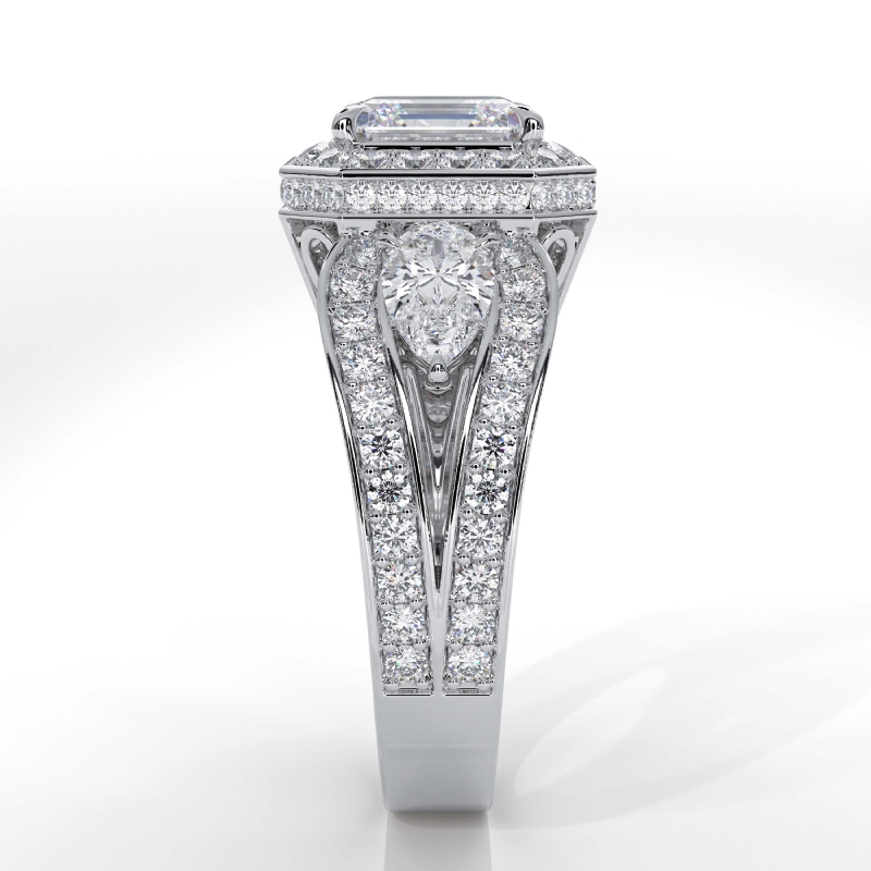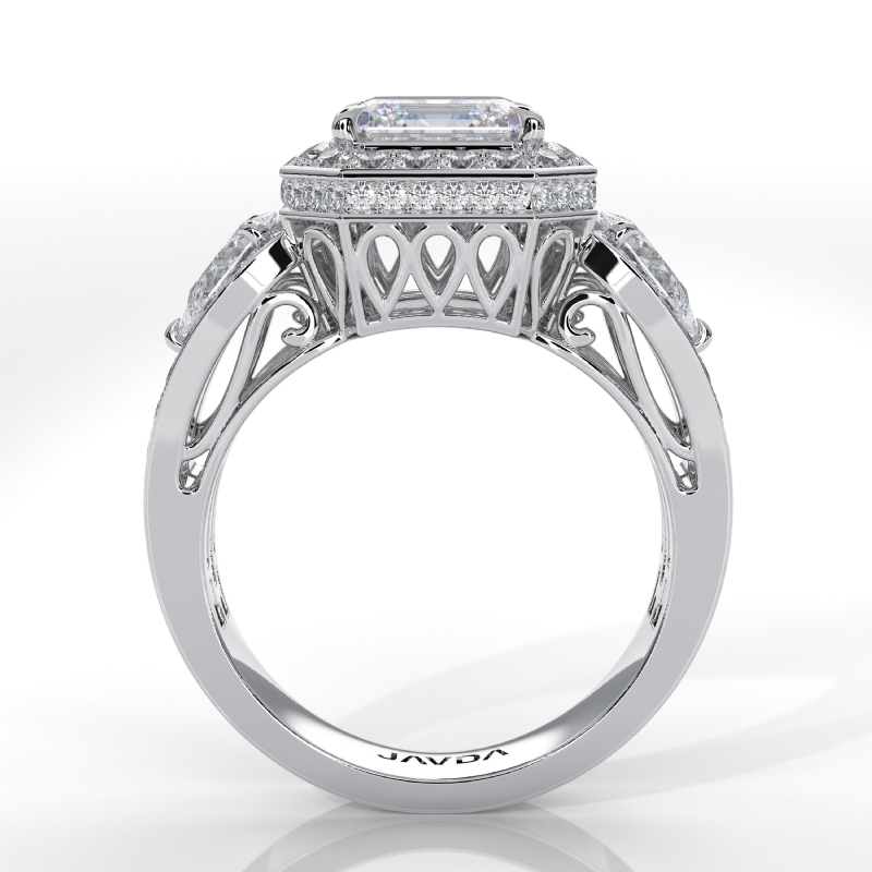 3Stone Asscher Diamond Engagement Halo Ring Set 14k White Gold Semi Mount 1.85Ct.