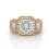 3Stone Asscher Diamond Engagement Halo Ring Set 14k Yellow Gold Semi Mount 1.85Ct.