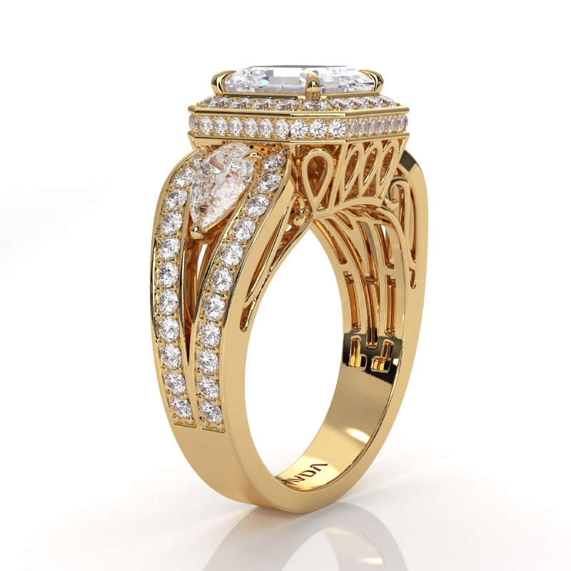 style Engagement Ring, center is Asscher shape Diamond Report by IGI, D Color & VS1 clarity, Made in 14k Yellow Gold (2.93 ct. tw.)