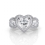 Heart Diamond Engagement Halo 3Stone Ring Set Platinum 950 SemiMount 1.85Ct.