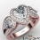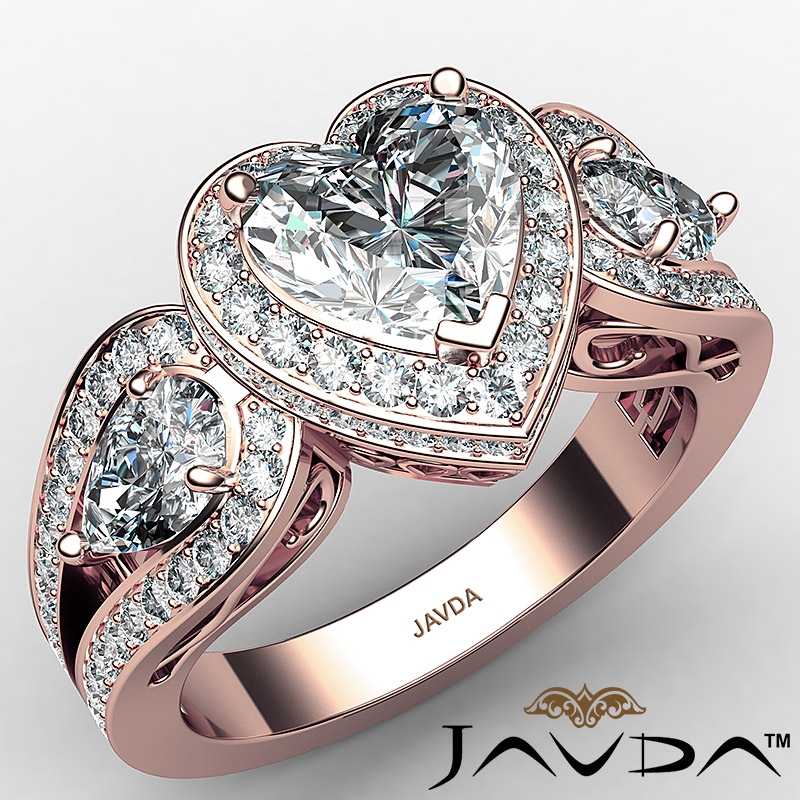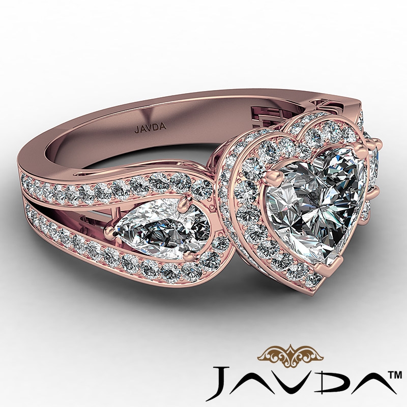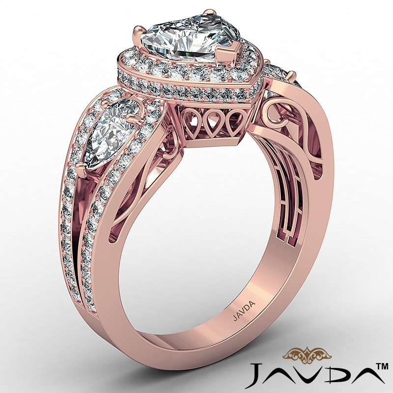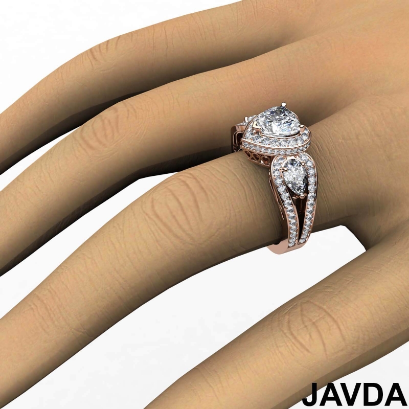 Heart Diamond Engagement Halo 3Stone Ring Set 18k Rose Gold SemiMount 1.85Ct.