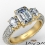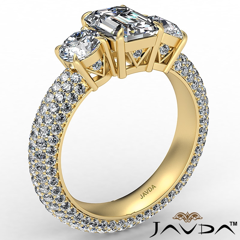 Three Stone Eternity Shank style Engagement Ring, center is Emerald shape Diamond Report by GIA, D Color & VVS1 clarity, Made in 14k Yellow Gold (3.44 ct. tw.)