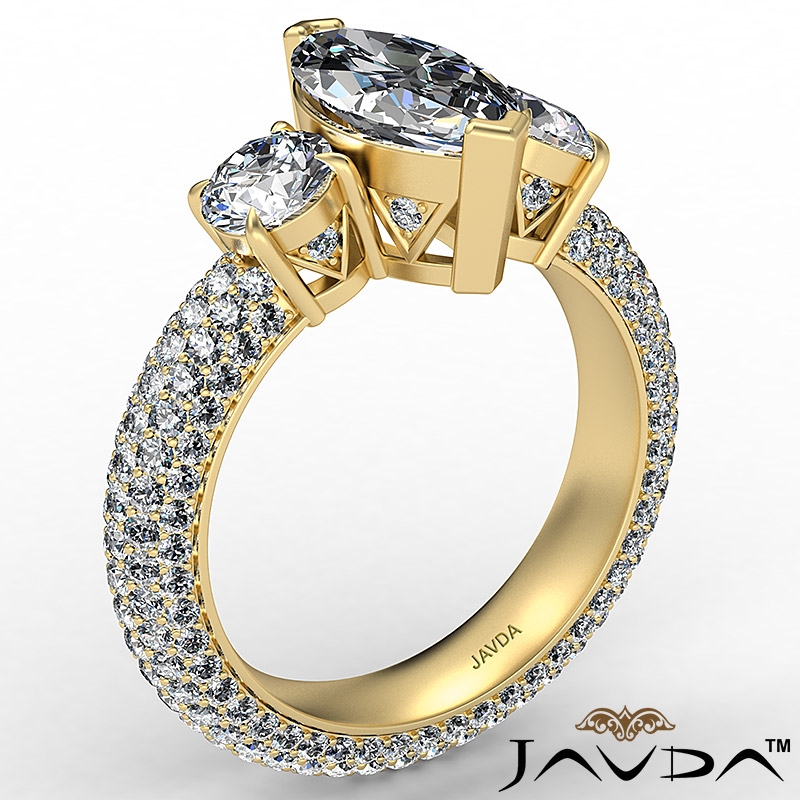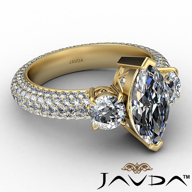 Three 3 Stone Marquise Diamond Engagement Ring 18k Yellow Gold Semi Mount 2.25Ct - javda.com