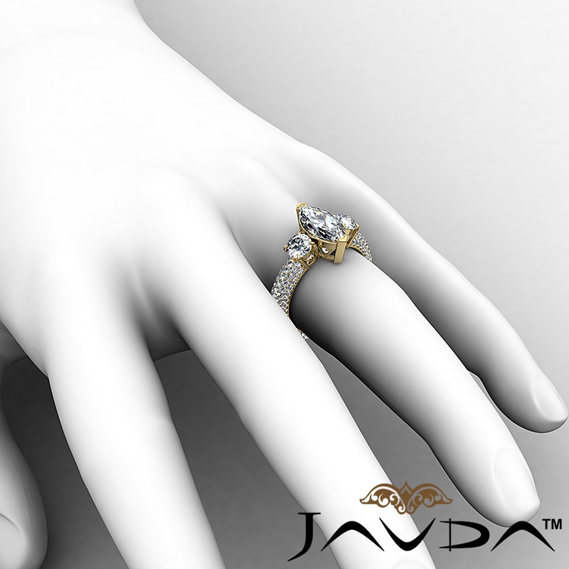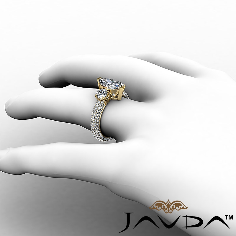 Claw Prong 3 Stone Eternity style Engagement Ring, center is Marquise shape Diamond Report by GIA, F Color & VVS2 clarity, Made in 18k Yellow Gold (3.25 ct. tw.)