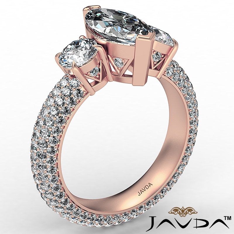 Claw Prong 3 Stone Eternity style Engagement Ring, center is Marquise shape Diamond Report by GIA, F Color & VVS2 clarity, Made in 18k Rose Gold (3.25 ct. tw.)