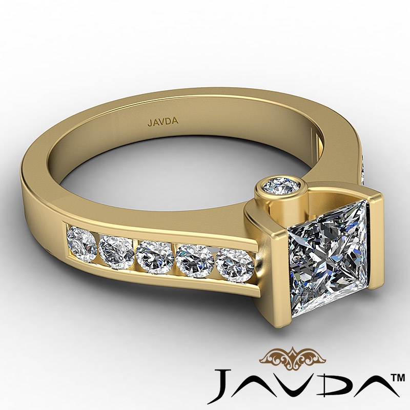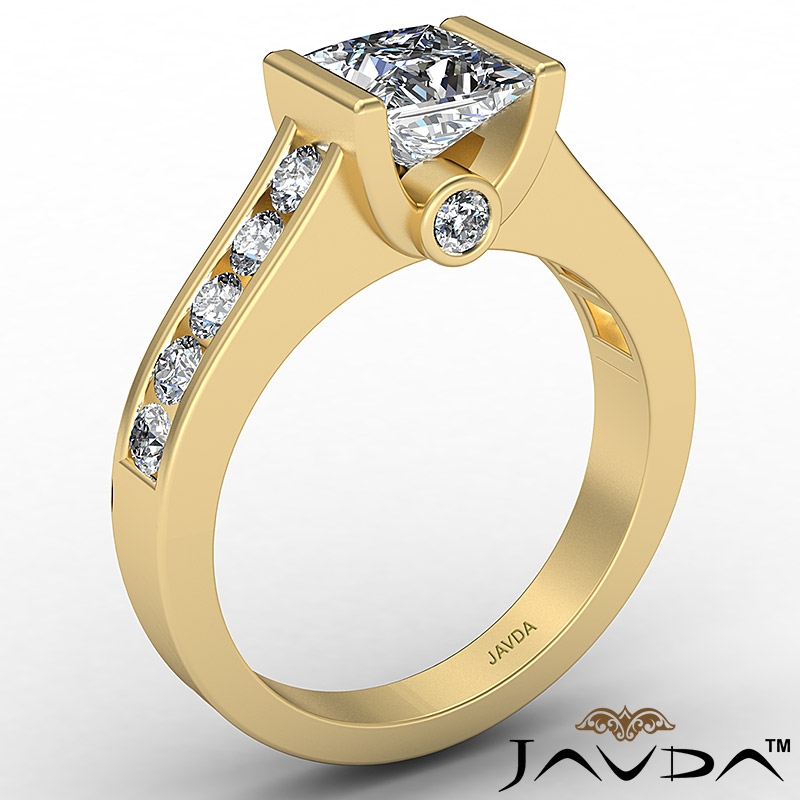 Channel Bezel Tension Setting style Engagement Ring, center is Princess shape Diamond Report by GIA, J Color & VS1 clarity, Made in 18k Yellow Gold (1.43 ct. tw.)