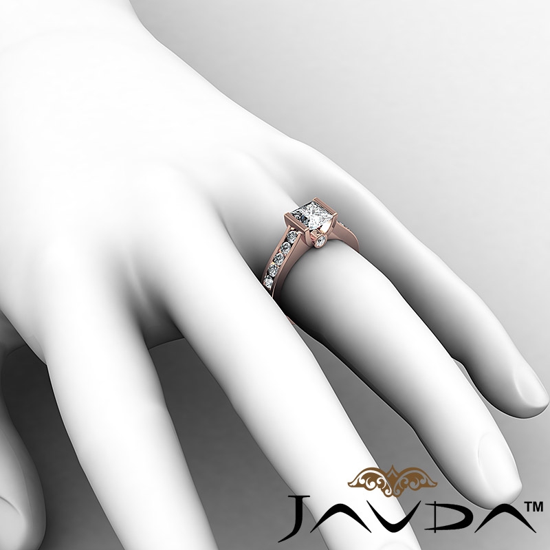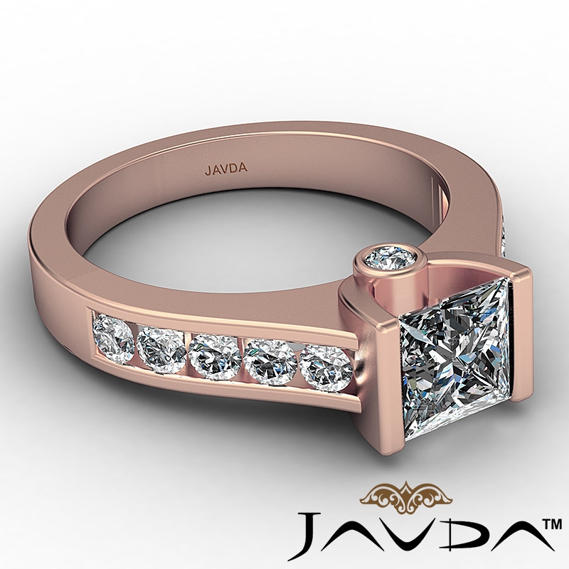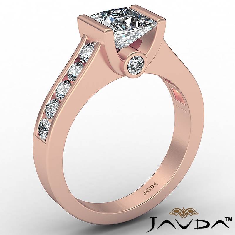 Channel Bezel Tension Setting style Engagement Ring, center is Princess shape Diamond Report by GIA, J Color & VS1 clarity, Made in 14k Rose Gold (1.43 ct. tw.)