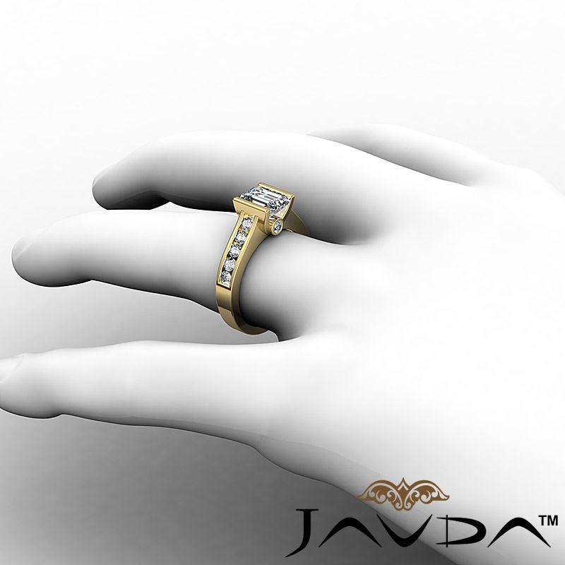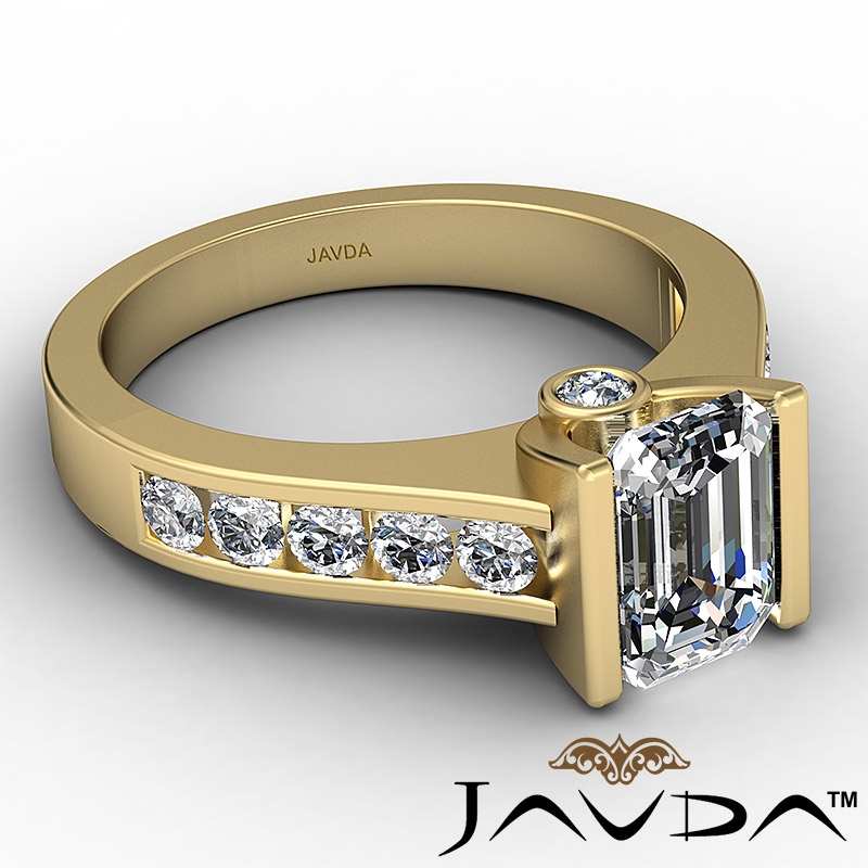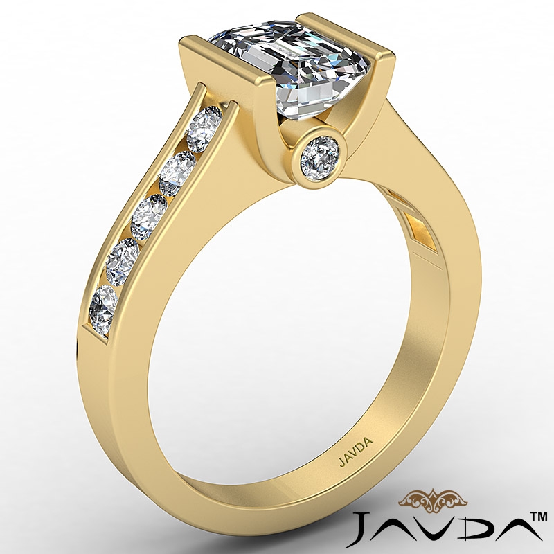 Channel Setting Accent Bezel style Engagement Ring, center is Emerald shape Diamond Report by GIA, D Color & VVS1 clarity, Made in 18k Yellow Gold (1.3 ct. tw.)