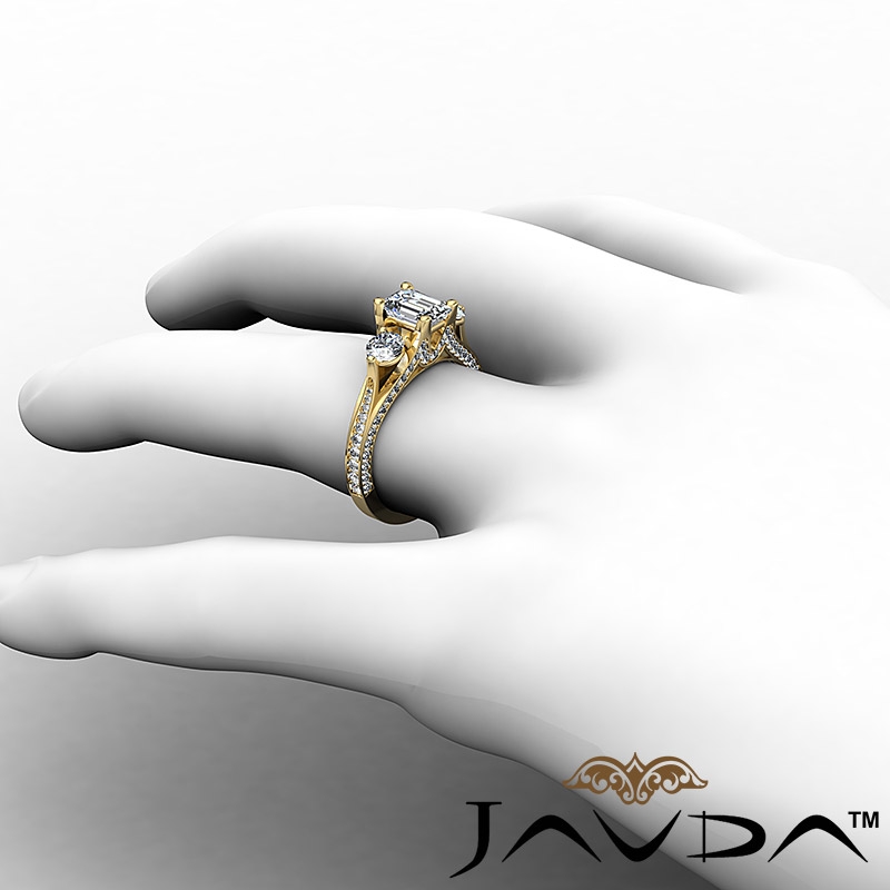 Three 3 Stone Emerald Diamond Engagement Ring Set 18k Yellow Gold Semi Mount 1.2Ct.