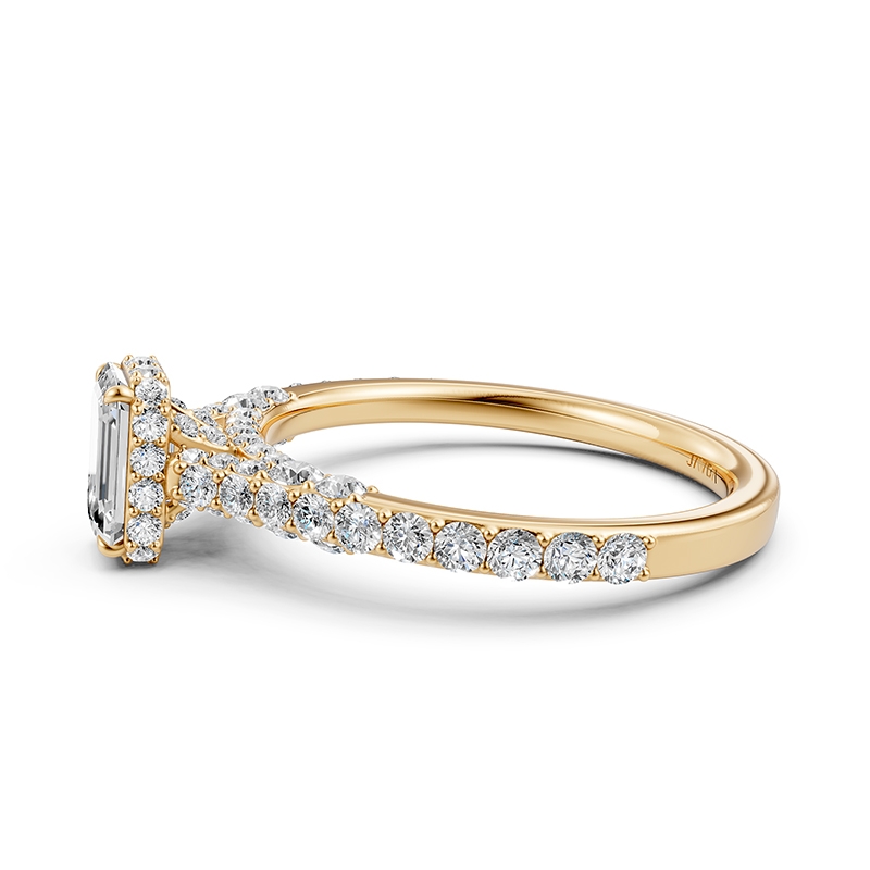 style Engagement Ring, center is Emerald shape Diamond Report by IGI, D Color & VS1 clarity, Made in 18k Yellow Gold (1.55 ct. tw.)