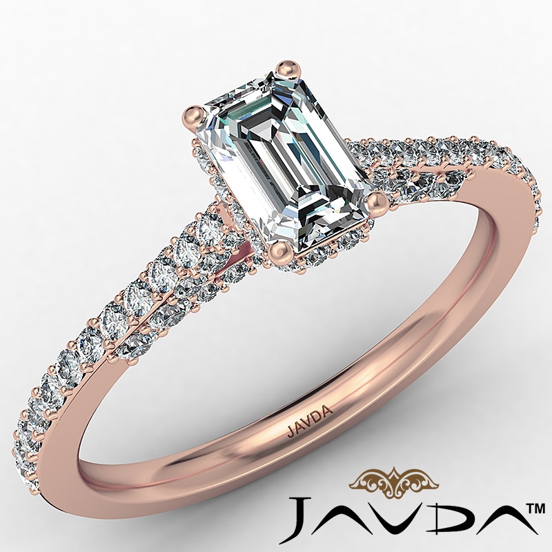 Diamond Engagement Pave Setting 18k Rose Gold Emerald Semi Mount Ring 0.55Ct.