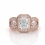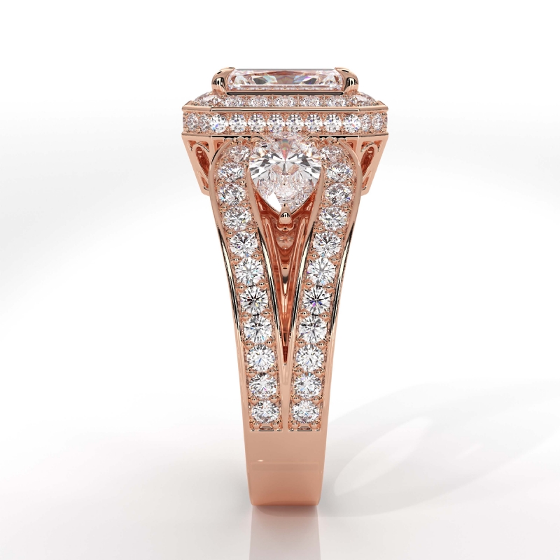 Radiant Diamond Engagement Halo 3Stone Ring Set 14k Rose Gold Semi Mount 1.85Ct.