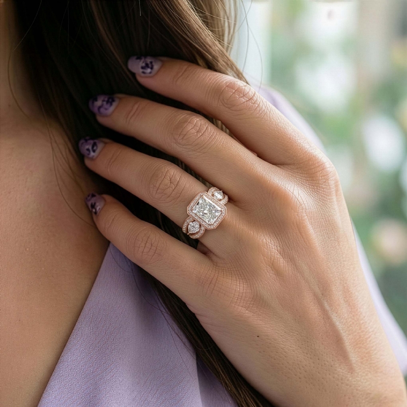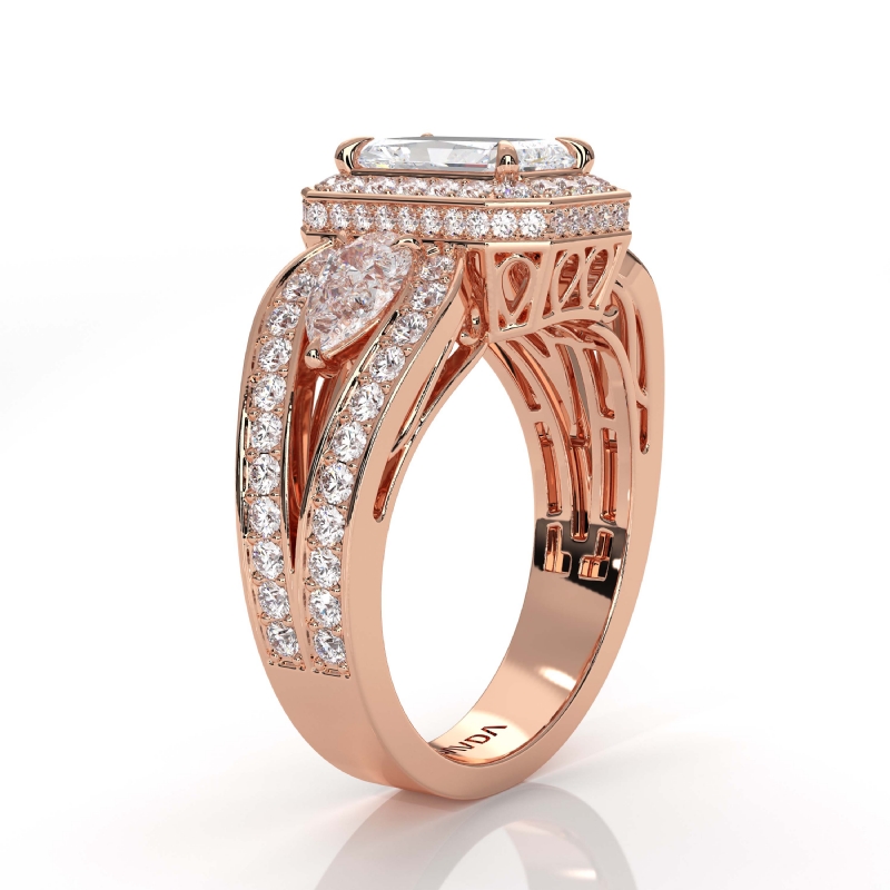 style Engagement Ring, center is Radiant shape Diamond Report by IGI, D Color & VS1 clarity, Made in 14k Rose Gold (2.85 ct. tw.)