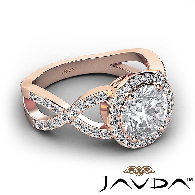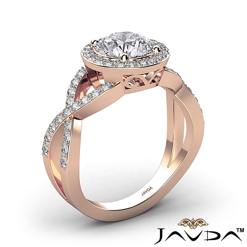 Halo Pave Cross Shank Filigree style Engagement Ring, center is Round shape Diamond Report by GIA, I Color & SI1 clarity, Made in 14k Rose Gold (1.7 ct. tw.)