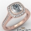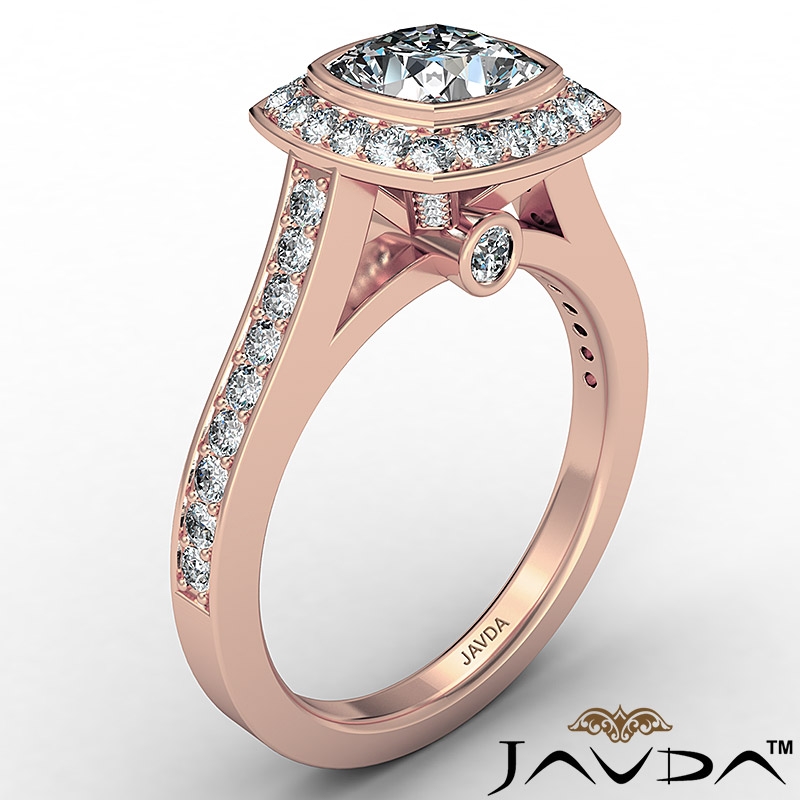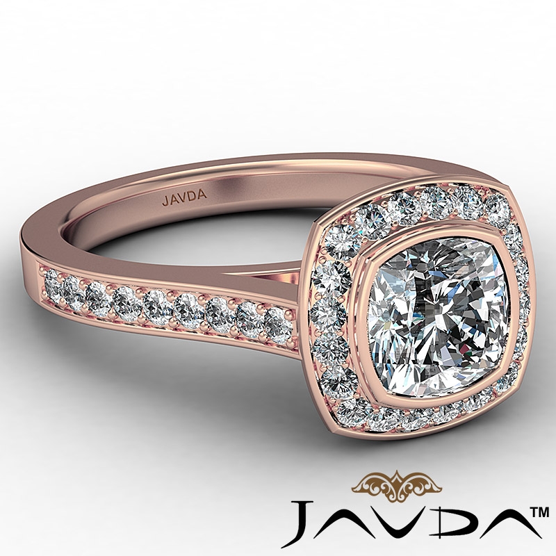 Micro Halo Pave Bezel Set style Engagement Ring, center is Cushion shape Diamond Report by GIA, E Color & VVS2 clarity, Made in 18k Rose Gold (1.5 ct. tw.)