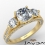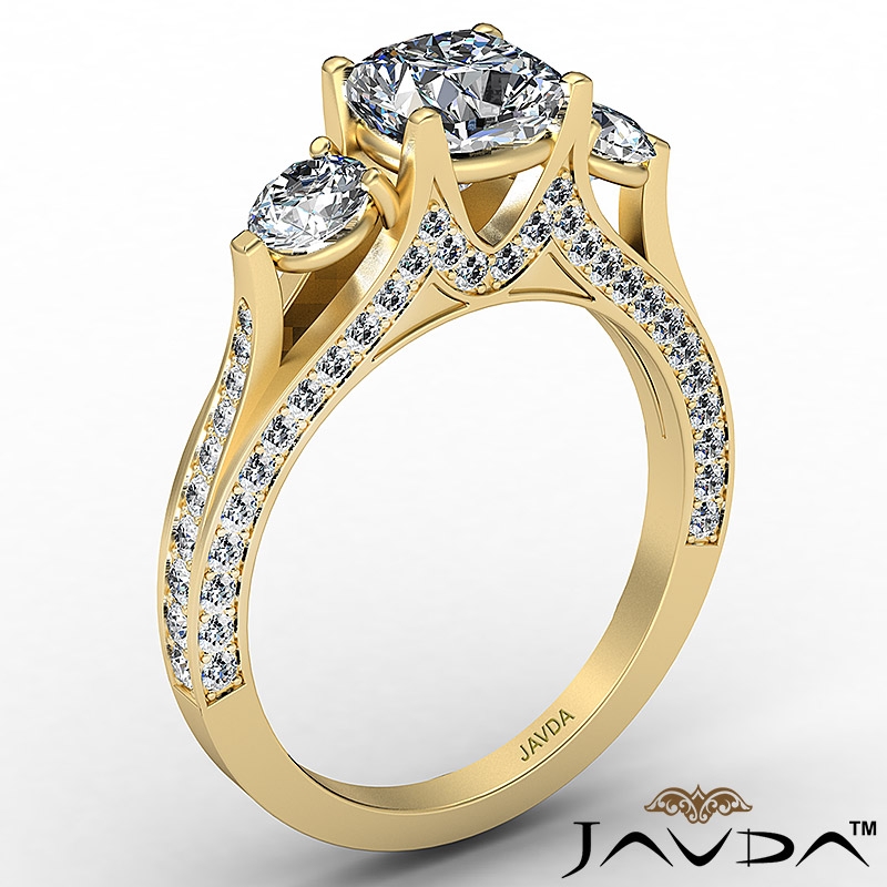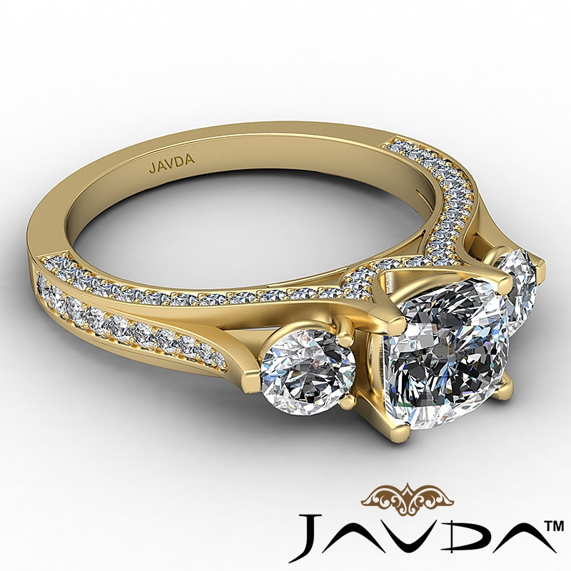 Three 3 Stone Cushion Diamond Engagement Ring 14k Yellow Gold Semi Mount 1.3Ct.