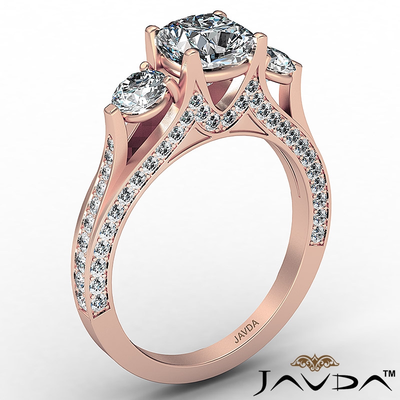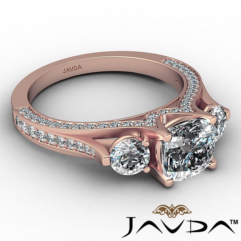 Three 3 Stone Cushion Diamond Engagement Ring 18k Rose Gold Semi Mount 1.3Ct.