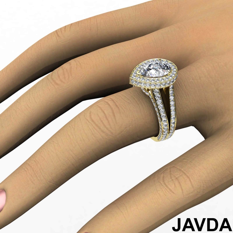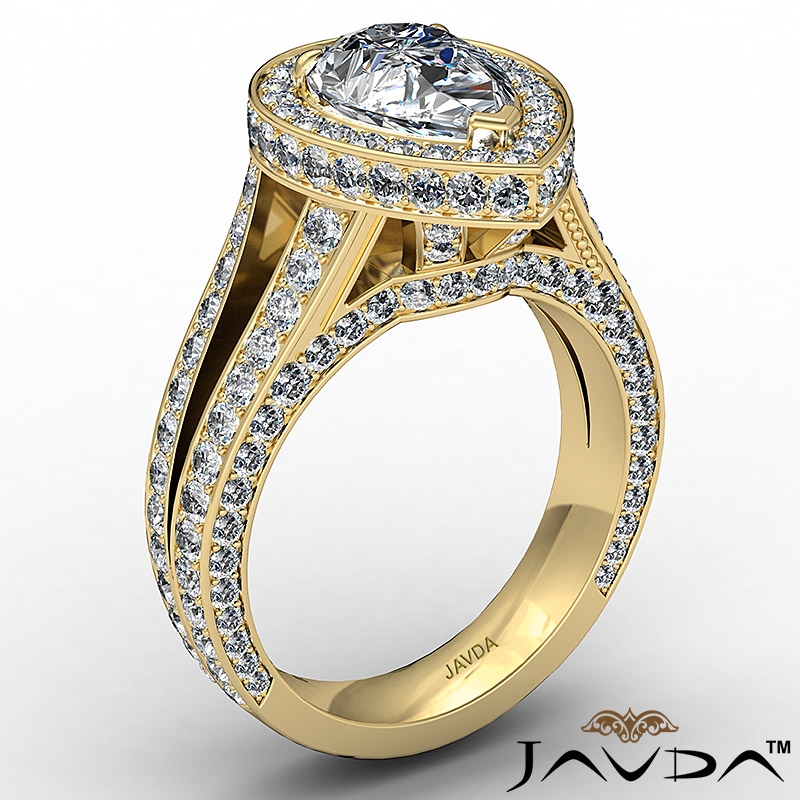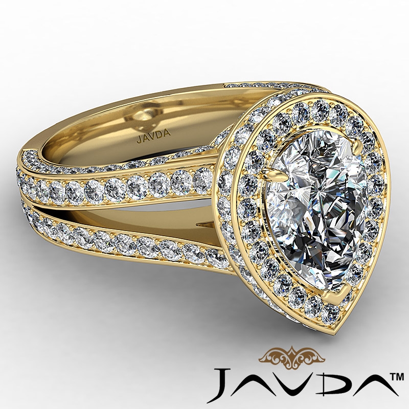 Micropave Halo Split Shank style Engagement Ring, center is Pear shape Diamond Report by GIA, I Color & SI2 clarity, Made in 14k Yellow Gold (2.41 ct. tw.)