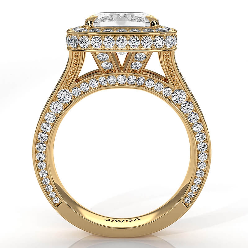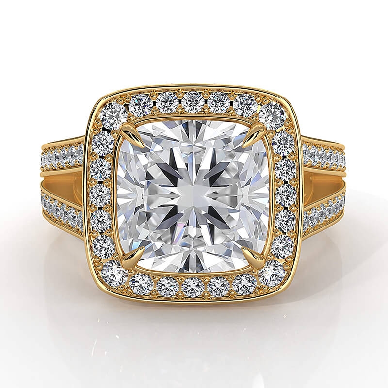 style Engagement Ring, center is Cushion shape Diamond Report by GIA, E Color & VVS2 clarity, Made in 14k Yellow Gold (2.5 ct. tw.)