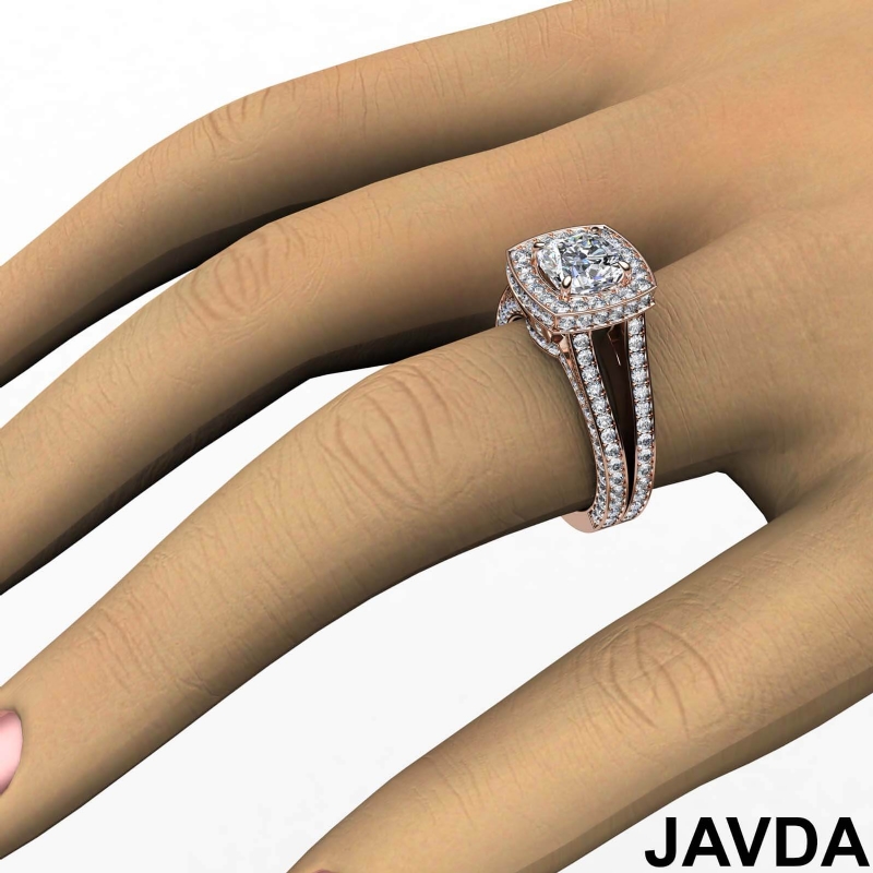 Halo Pave Set Diamond Engagement Ring 18k Rose Gold Cushion Semi Mount 1.5Ct.