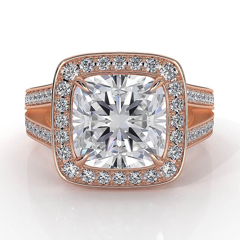 style Engagement Ring, center is Cushion shape Diamond Report by GIA, E Color & VVS2 clarity, Made in 18k Rose Gold (2.5 ct. tw.)