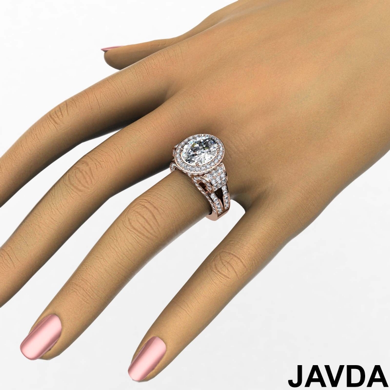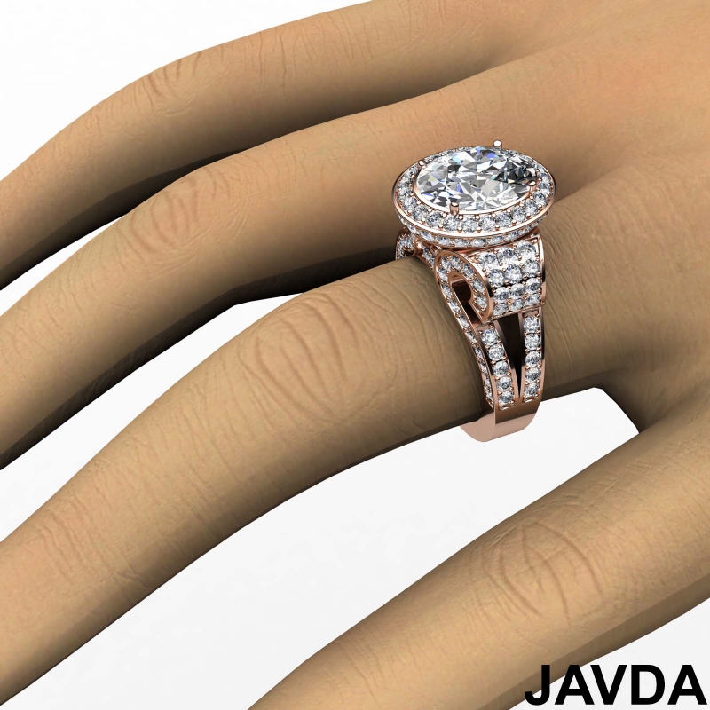 Vintage Oval Diamond Engagement Semi Mount Ring Halo Setting 14k Rose Gold 2.6Ct.
