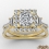 Baguette Three Stone Halo Pave style Engagement Ring, center is Princess shape Diamond Report by GIA, F Color & VS2 clarity, Made in 14k Yellow Gold (1.8 ct. tw.)