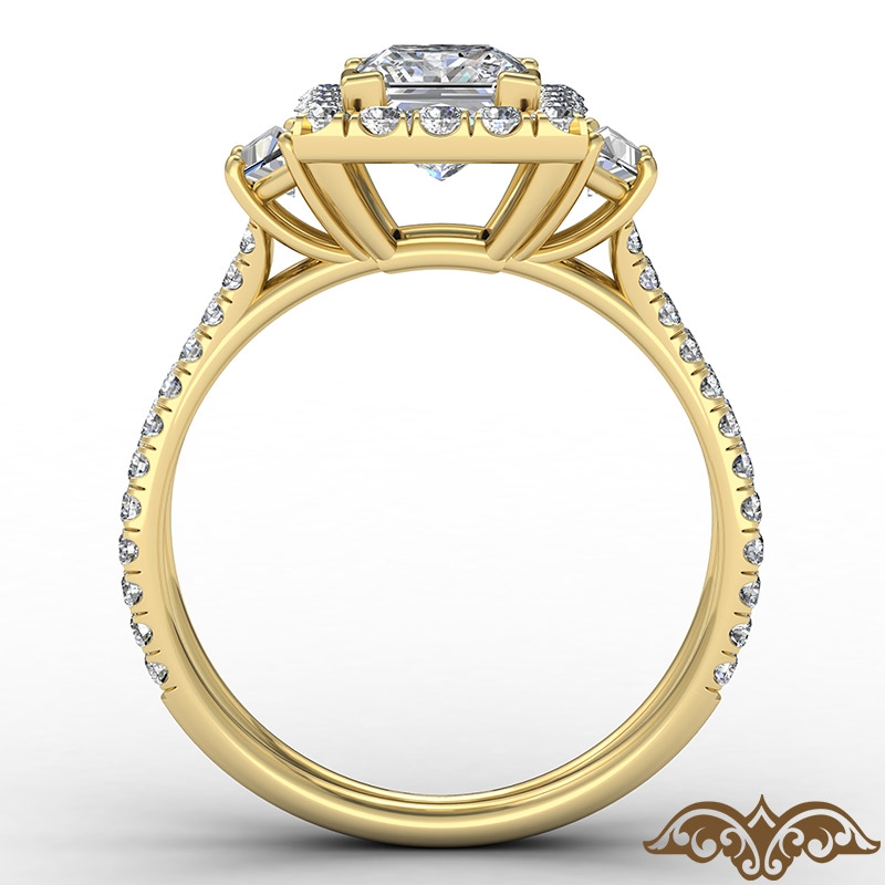Three Stone Princess Semi Mount 18k Yellow Gold Halo Diamond Engagement Ring 1.1Ct.