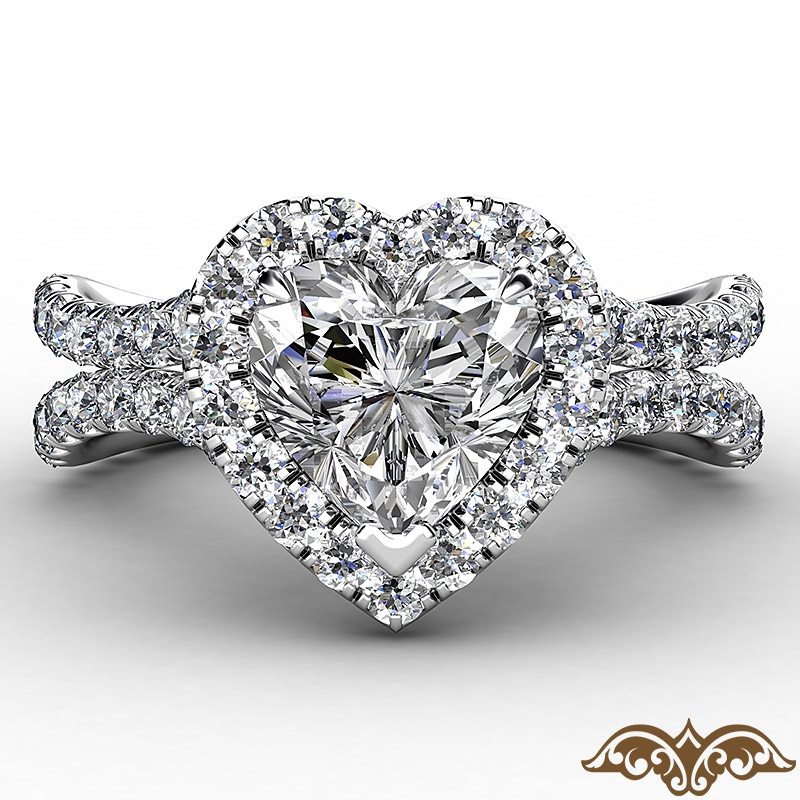 Cathedral Halo French Pave style Engagement Ring, center is Heart shape Diamond Report by GIA, F Color & SI1 clarity, Made in Platinum 950 (1.87 ct. tw.)