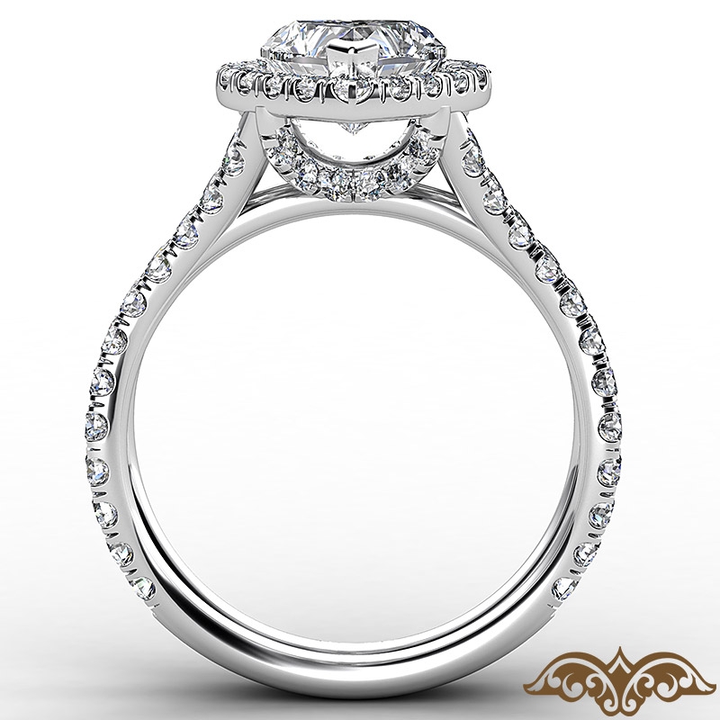 Round Cut Semi Mount Halo Split Shank Diamond Engagement Ring Platinum 950 1.1Ct.