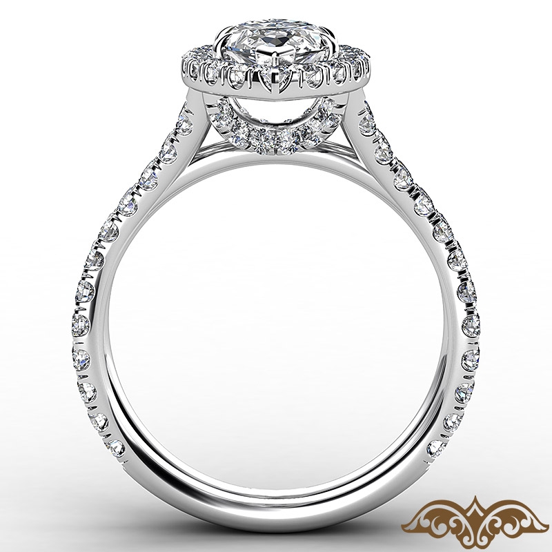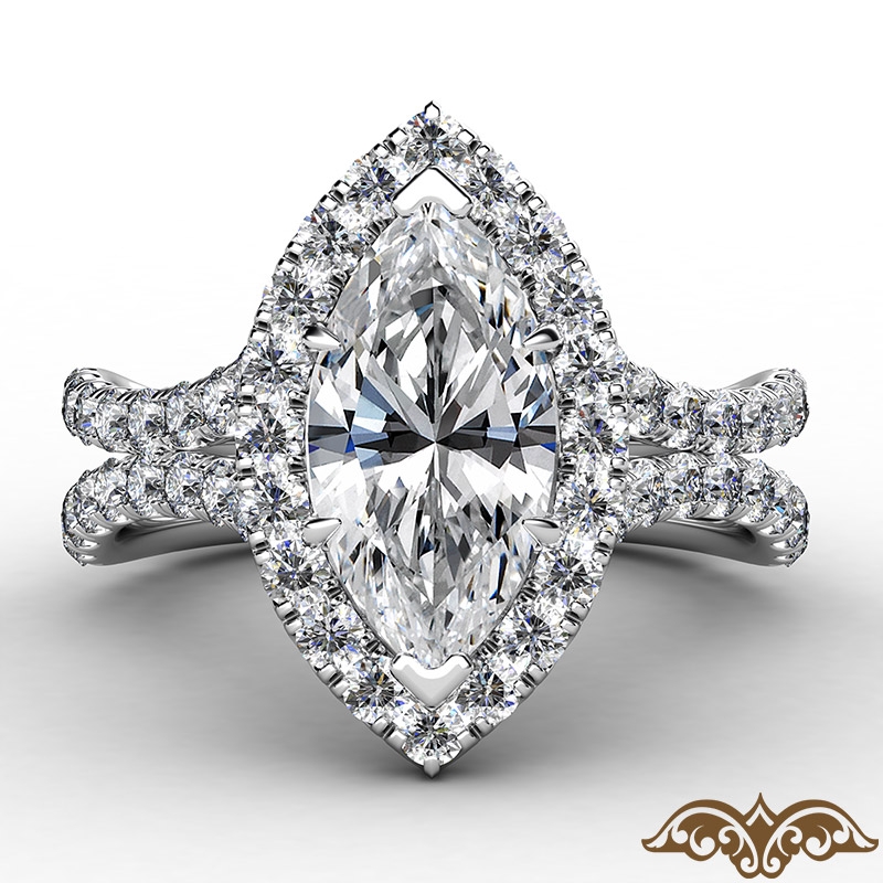 Cathedral Halo French Pave style Engagement Ring, center is Marquise shape Diamond Report by GIA, F Color & VVS2 clarity, Made in Platinum 950 (2.1 ct. tw.)