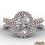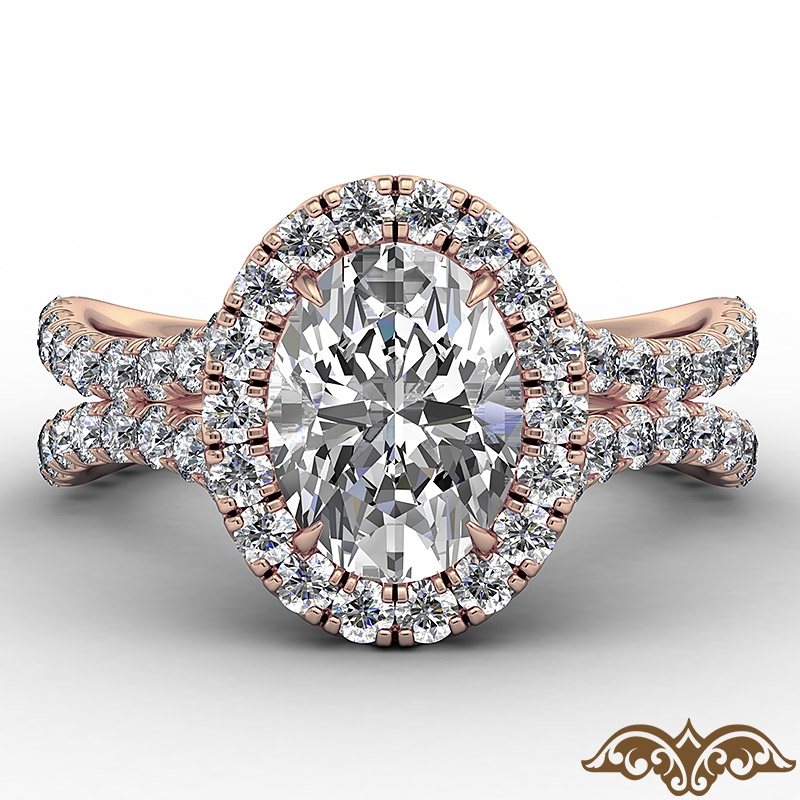 Cathedral Halo French Pave style Engagement Ring, center is Oval shape Diamond Report by GIA, E Color & VVS2 clarity, Made in 14k Rose Gold (1.9 ct. tw.)