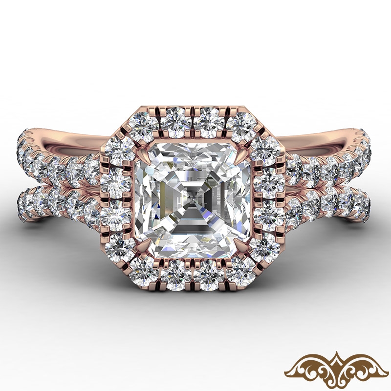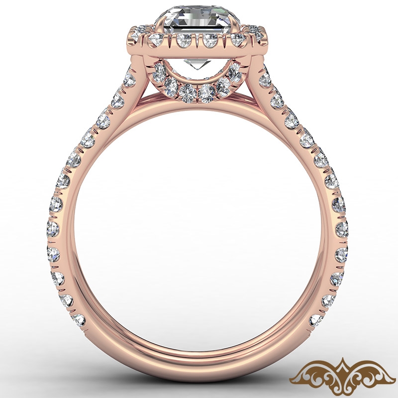 Cathedral Halo French Pave style Engagement Ring, center is Asscher shape Diamond Report by IGI, D Color & VS1 clarity, Made in 14k Rose Gold (2.18 ct. tw.)